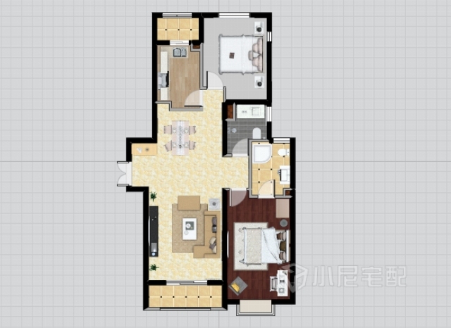 客廳、餐廳一體化、使空間得到了充分的利用。