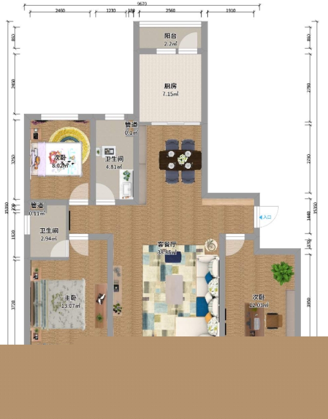 該戶型是日照市直三區(qū)128平米的戶型,業(yè)主為一家三口,崇尚自然,簡單又不失簡約的生活方式,根據(jù)業(yè)主要求,做了以下方案。